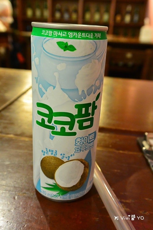 店內有很多韓國來的飲料酒品,這飲料看外觀覺得像是椰奶,但其實是有椰果的養樂多耶,味道我好喜歡,這陣子去百貨超市找都沒有看到,看來得飛一趟韓國了(誤)