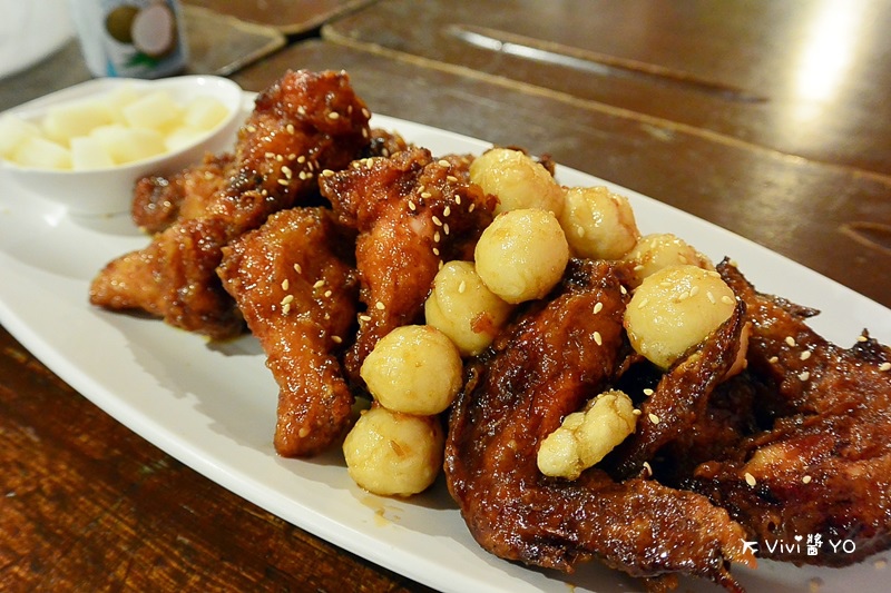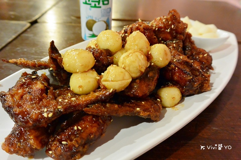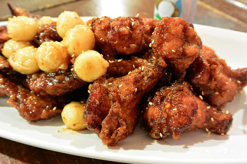 炸雞翅一份共有八個小雞翅跟八個小雞腿,份量實在很多,炸雞翅味道酸酸甜甜的很好吃,表皮香濃又有脆潤感,醬汁越吃越香,肉質汁多味美。年糕QQ的帶點黏性不會膩,我覺得三樣食物交替吃還蠻剛好的,口味都搭配得嘟嘟好。