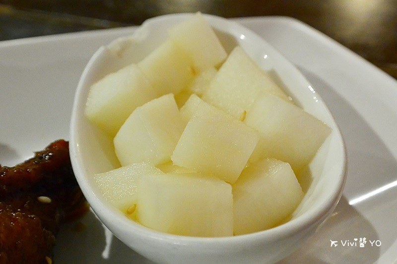 不管黑醬跟紅醬都不會辣,單純用顏色做區分命名,除了炸雞翅外還附上一小碟的蘿蔔,可以讓嘴巴換換味道清爽點,味道酸甜不刺激。